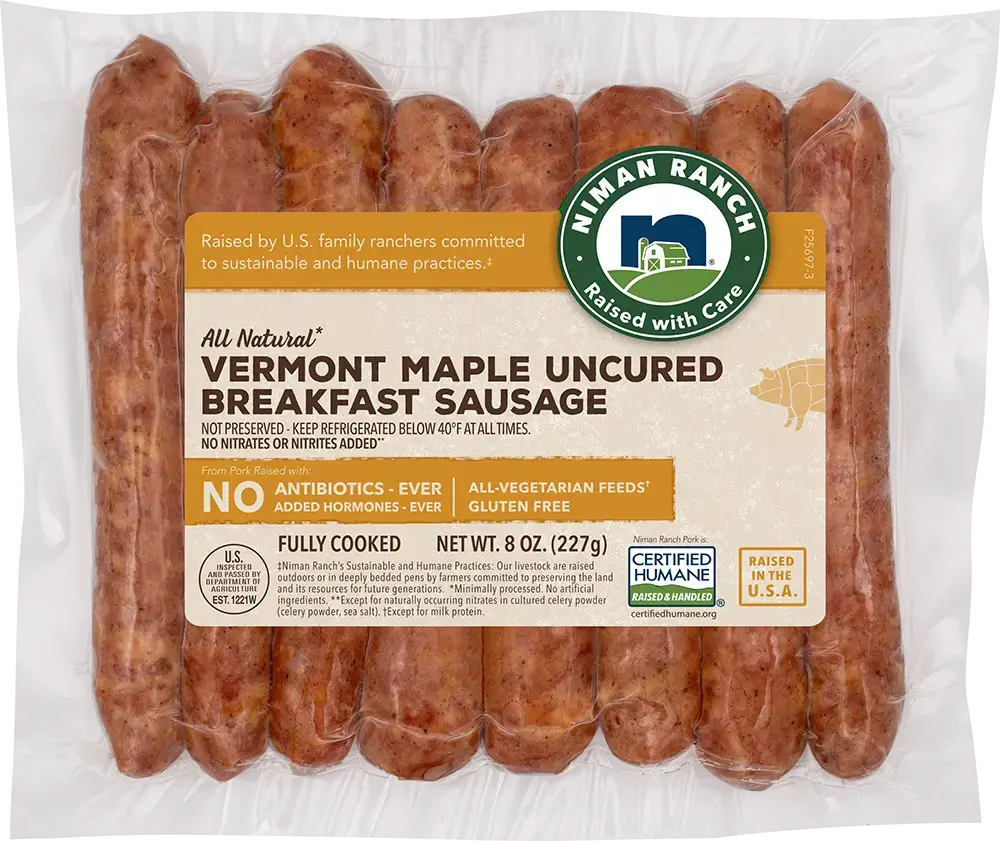 Sweeten up your morning with our traditional pork breakfast sausage infused with real Vermont maple syrup.